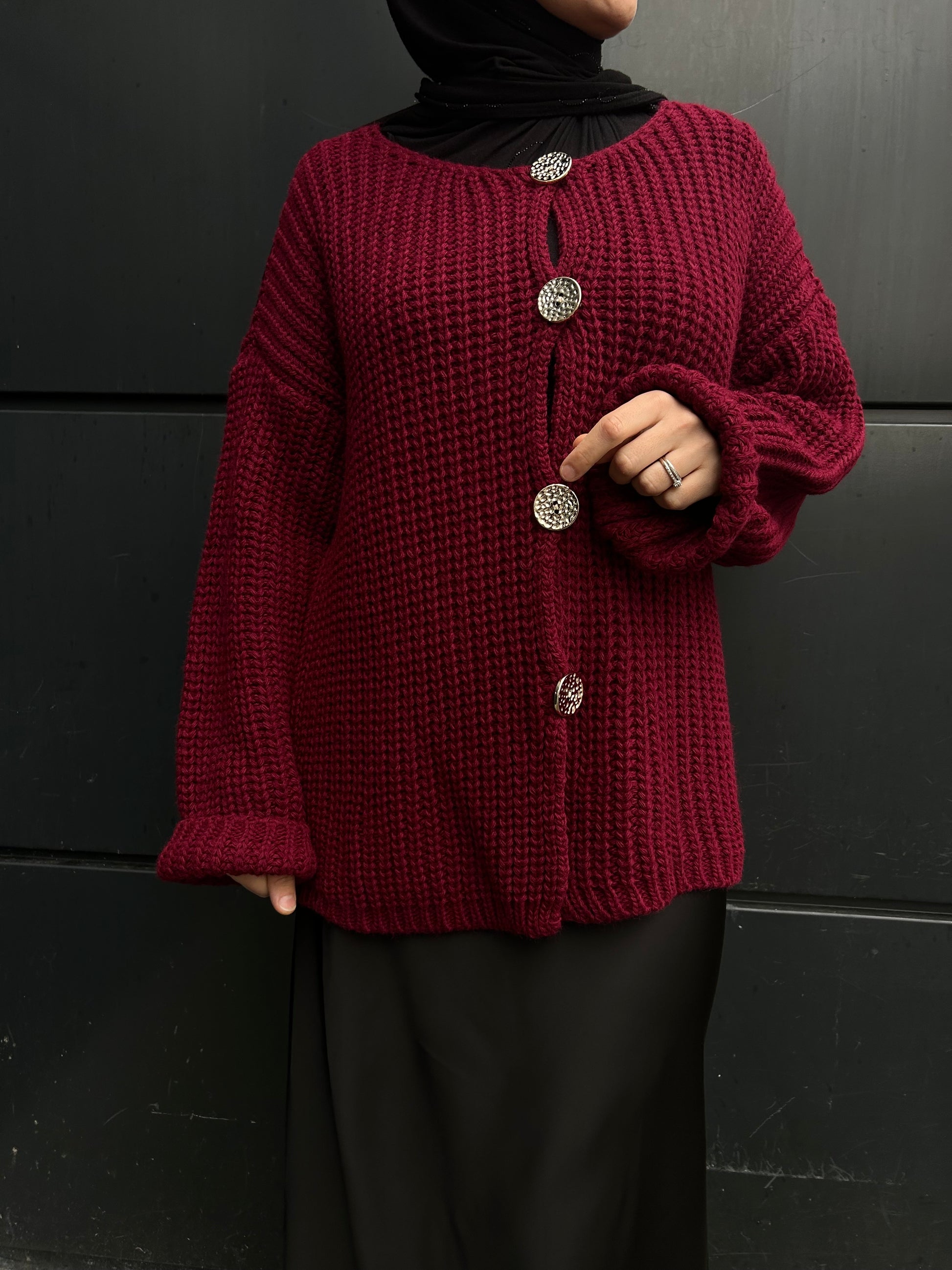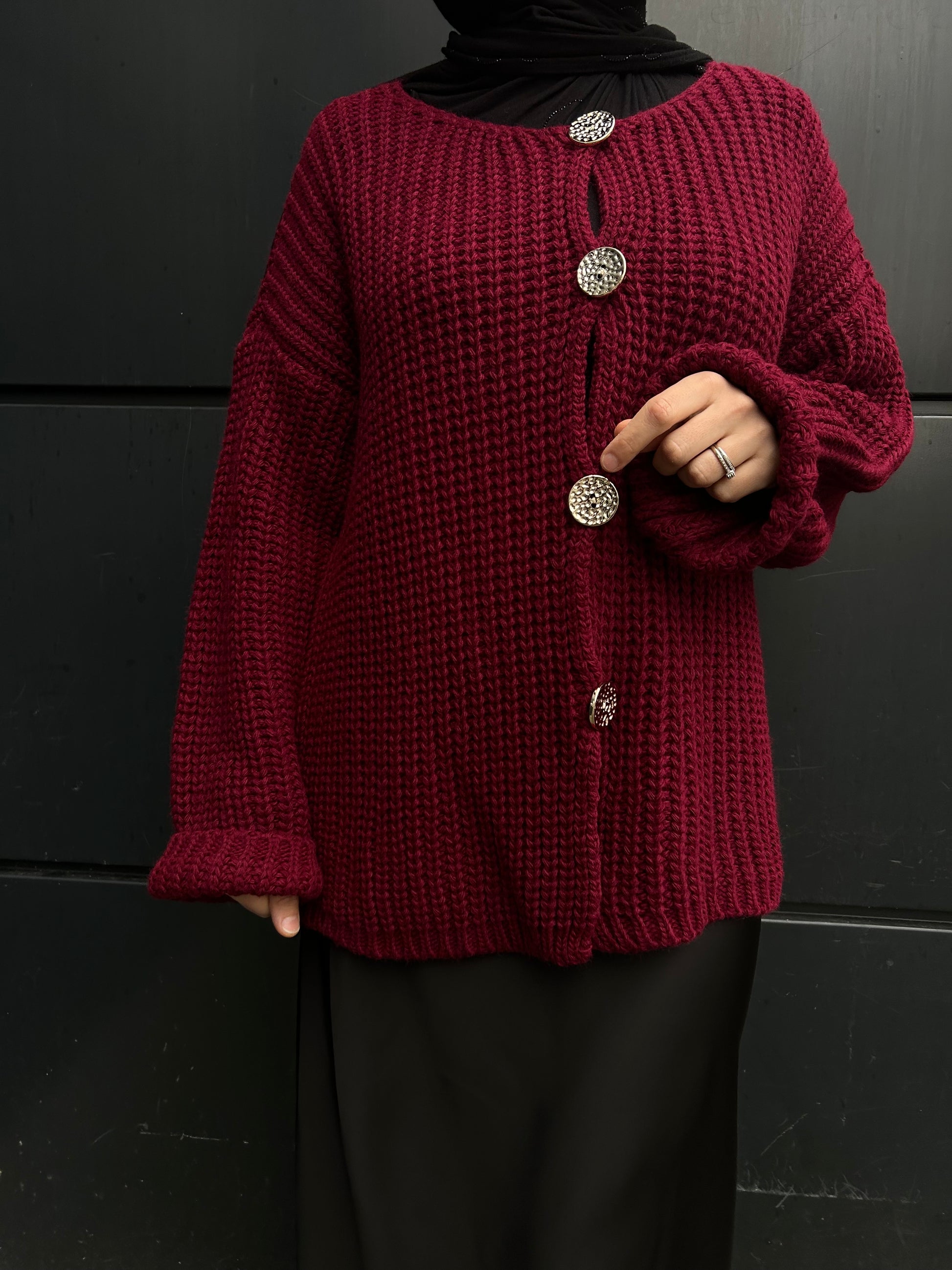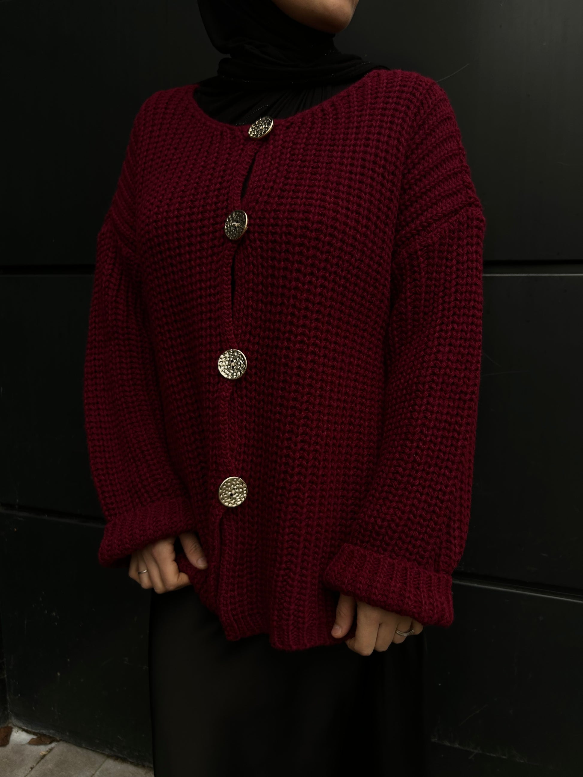 Gilet mi-long en laine épaisse, avec gros boutons