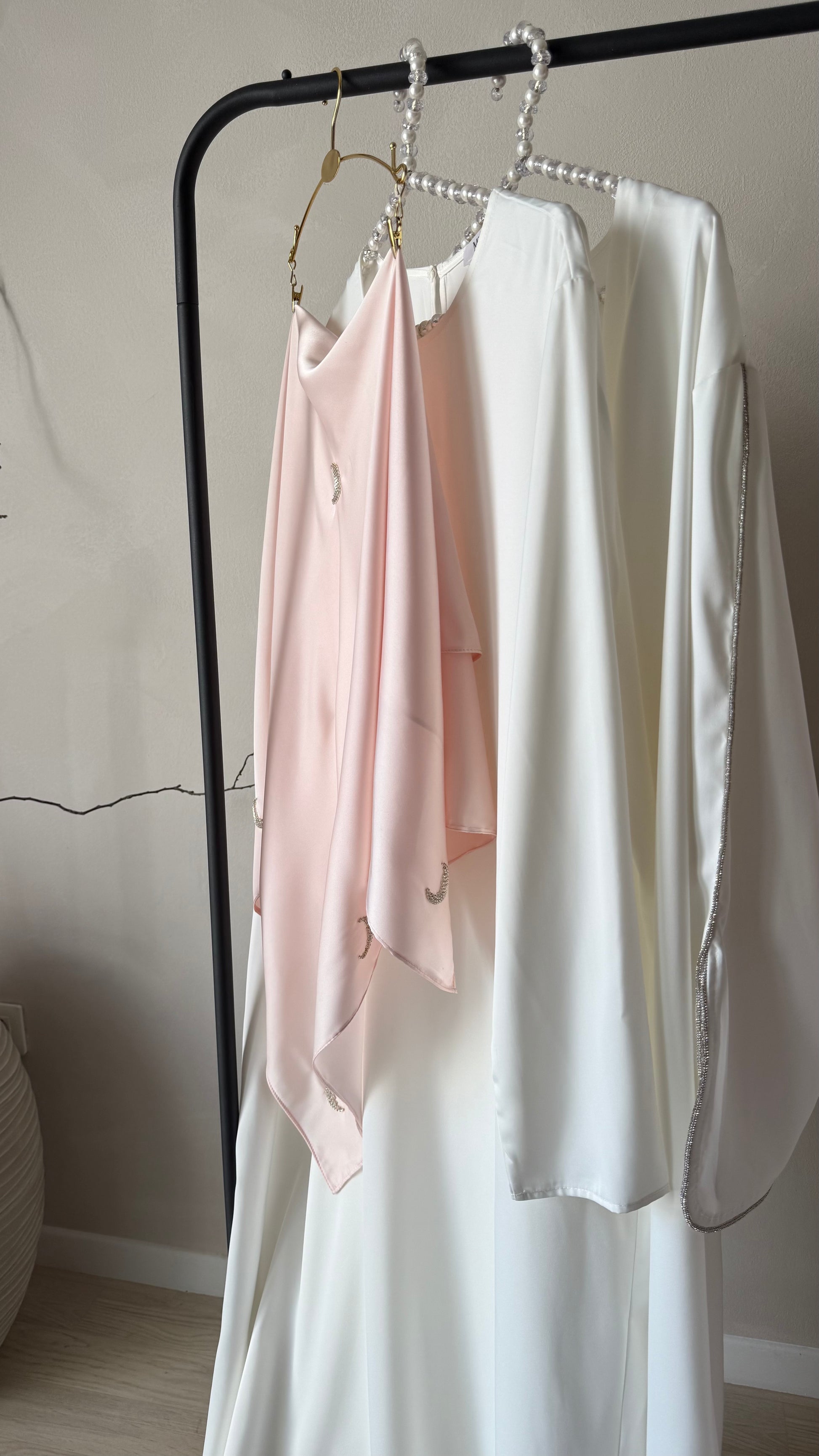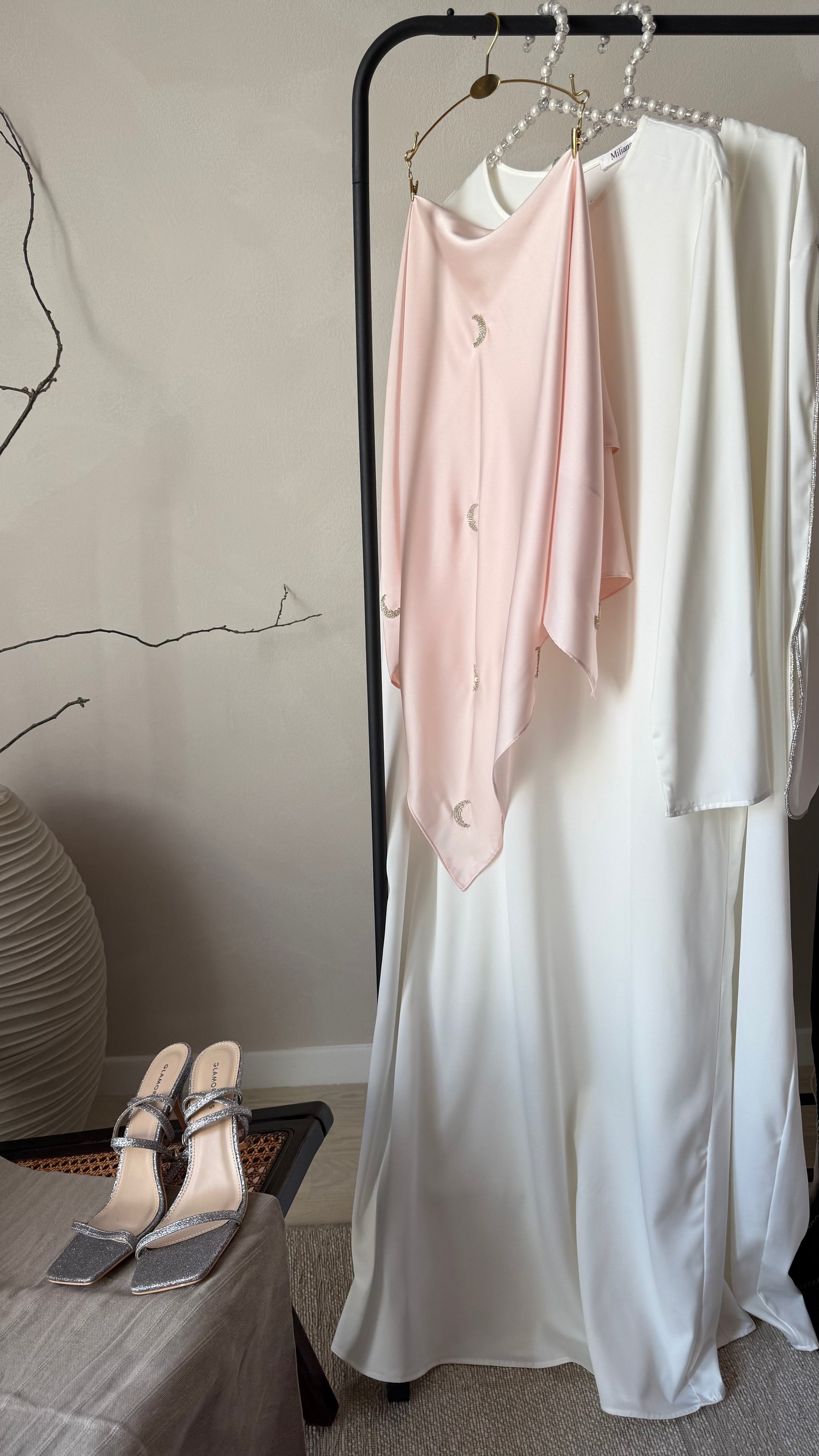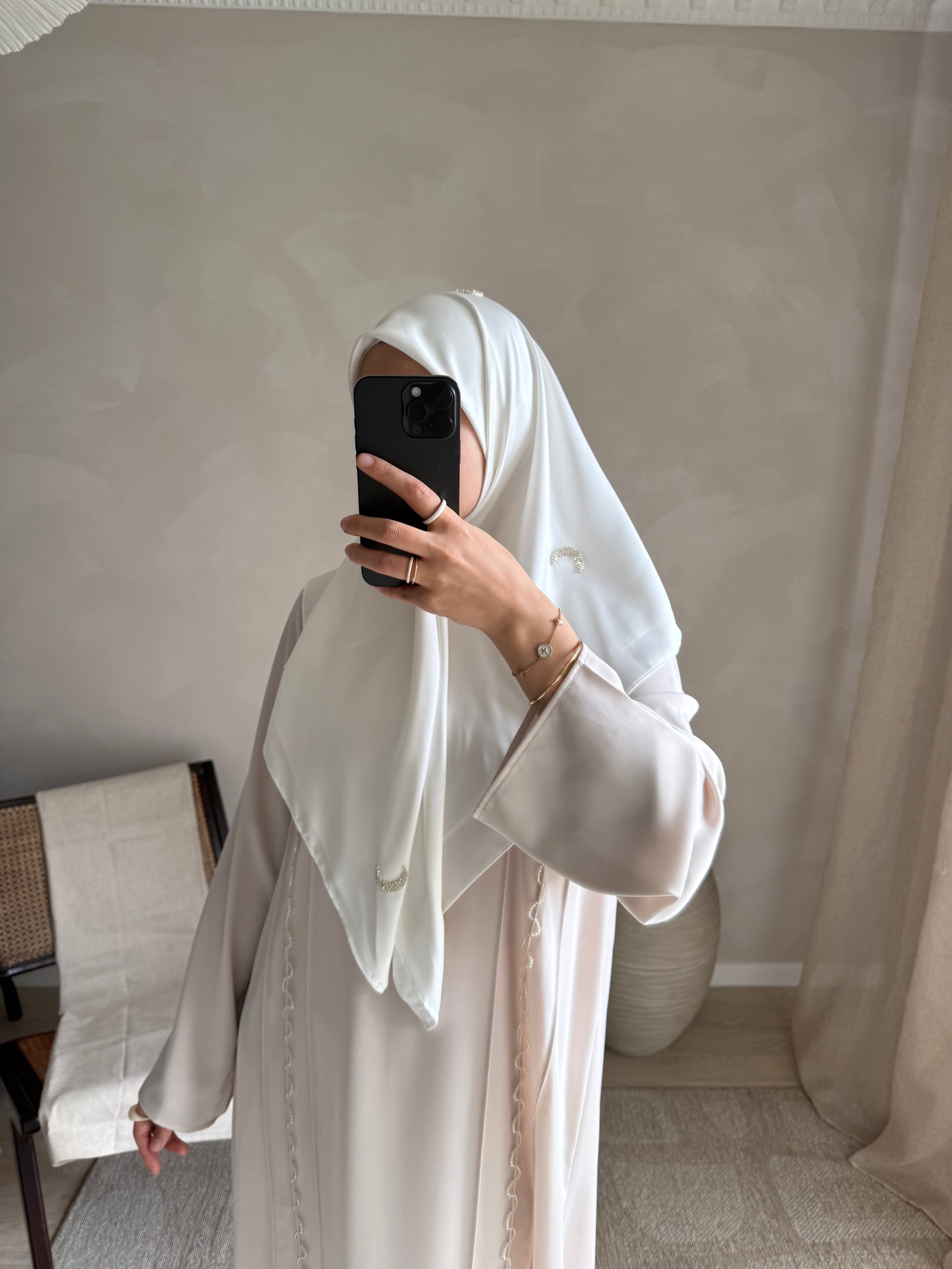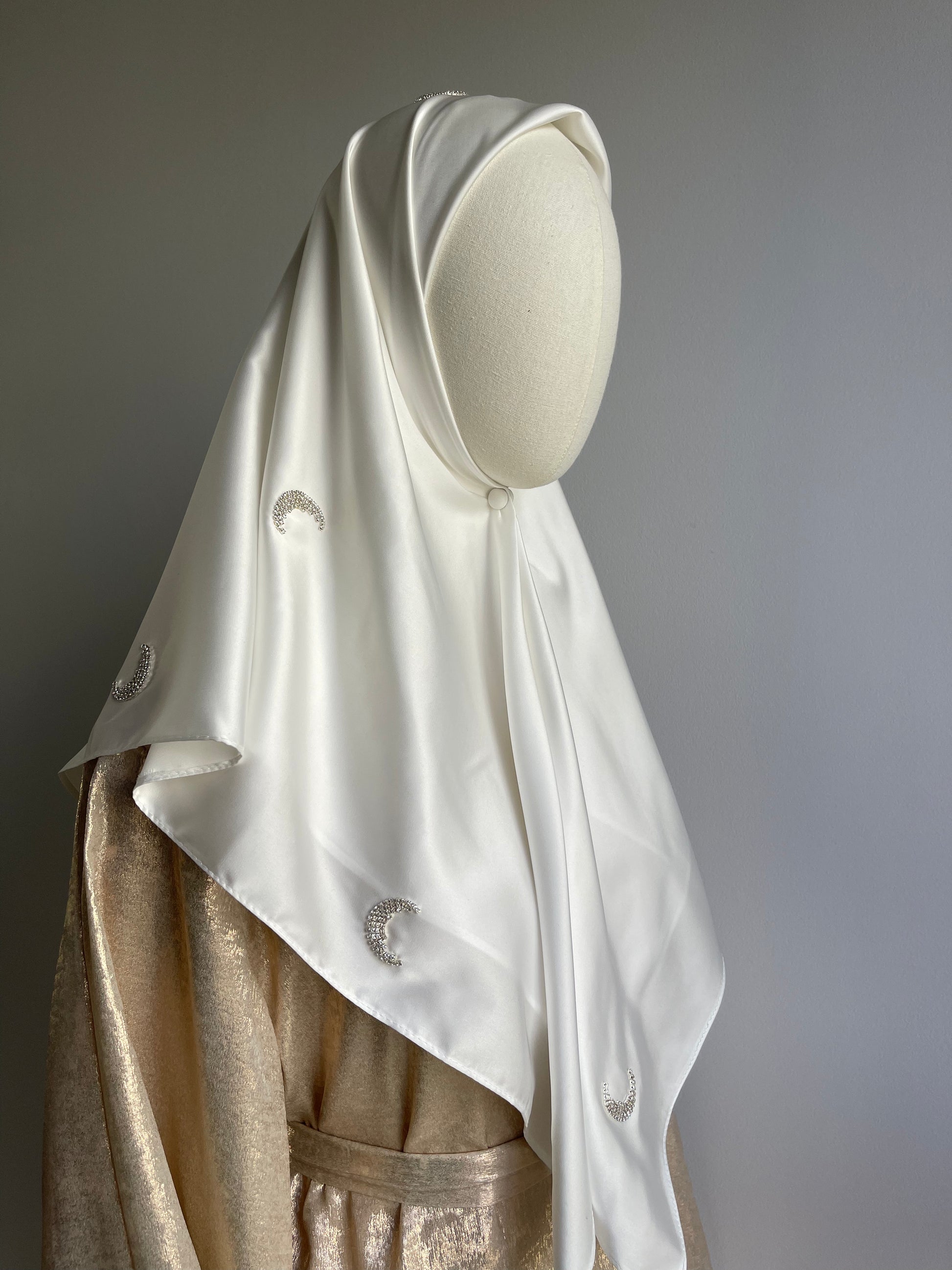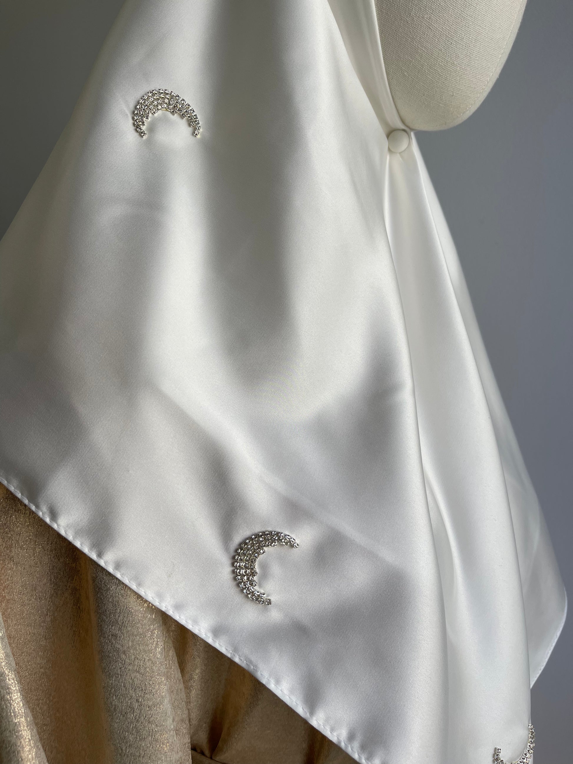 Hijab carré en satin, strass lune.