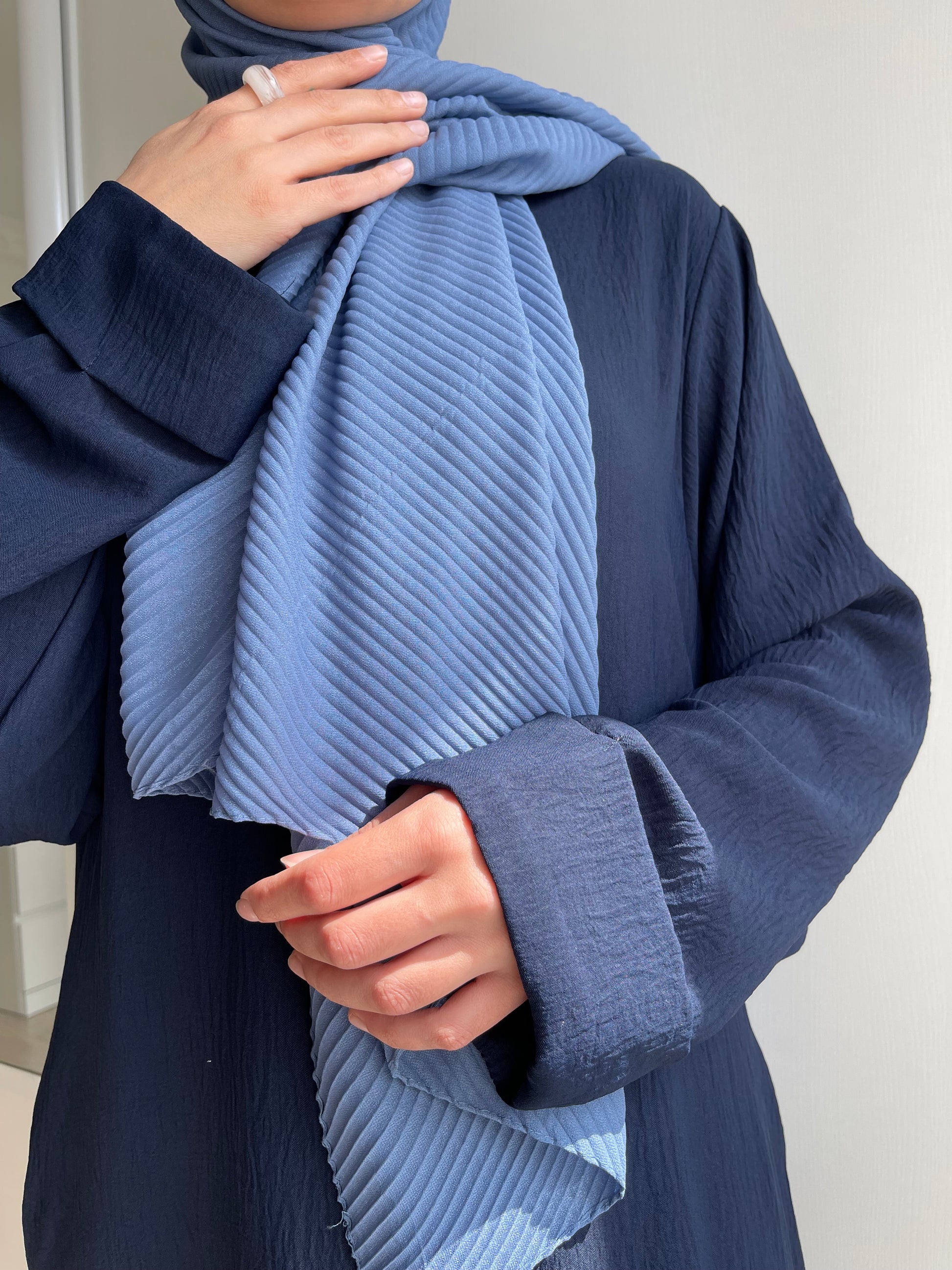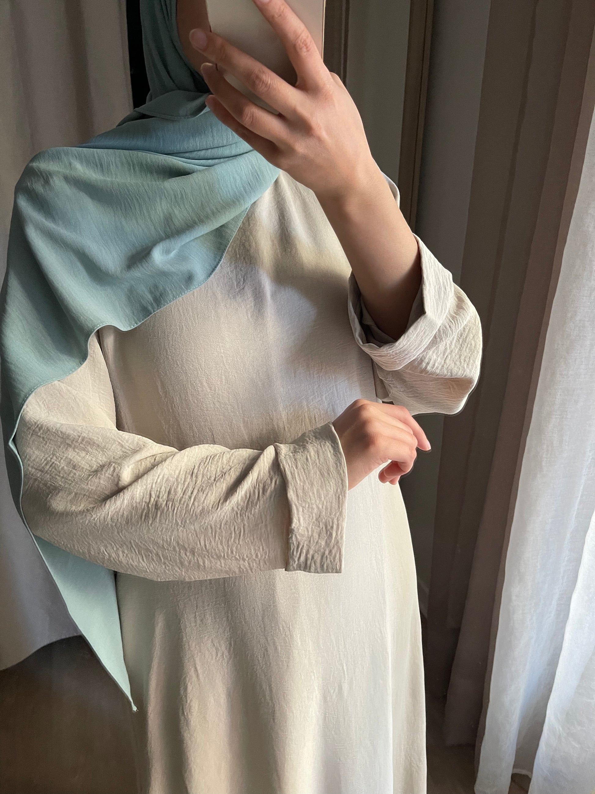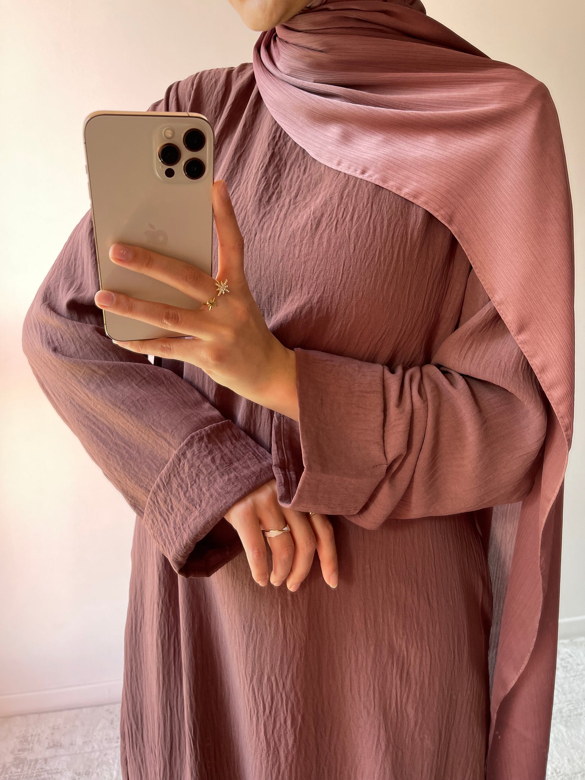 Longue robe en jazz, coupe droite avec poches et manches à revers.