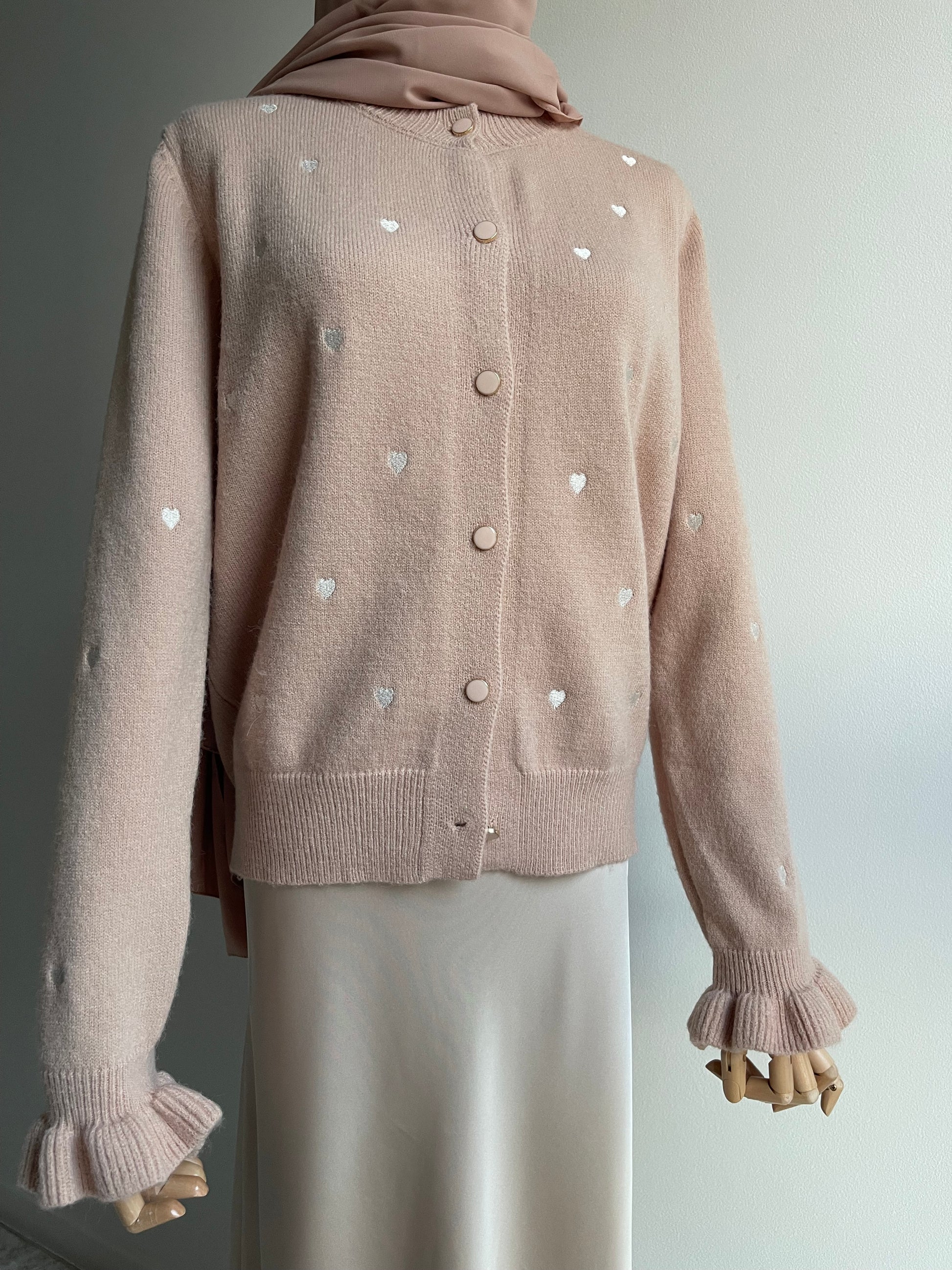 Gilet en laine avec des cœurs brodés et boutons